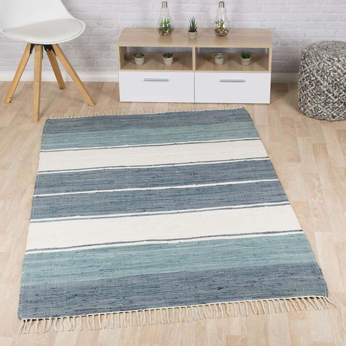 Passatoia kilim – Bomull blu/bianco -44%