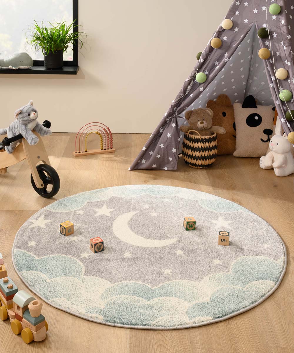 Tappeto bambini nuvola rotondo – Dreams cloud azzurro/grigio -33%