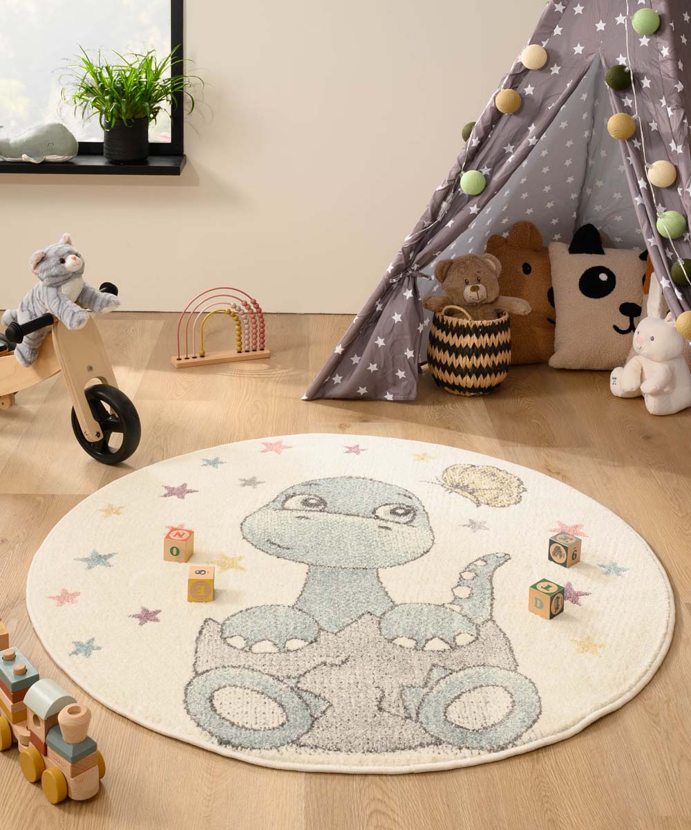 Tappeto dinosauri rotondo – Dreams dino bianco/blu -33%