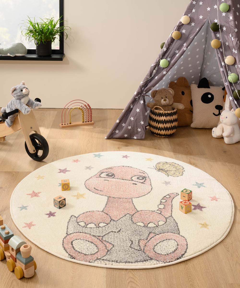 Tappeto dinosauri rotondo – Dreams dino bianco/rosa -33%